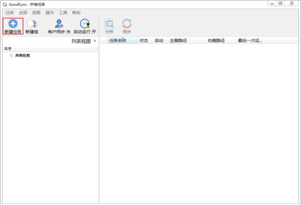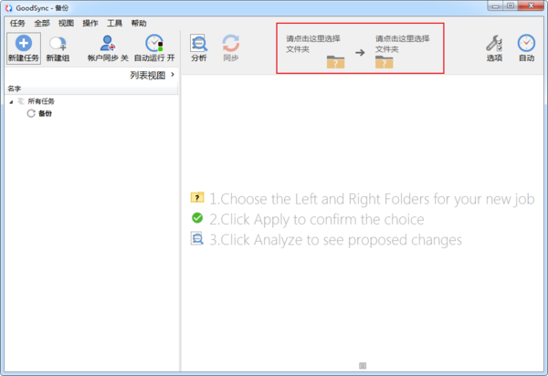 首先打开GoodSync,点击上方的新建任务,创建备份任务。