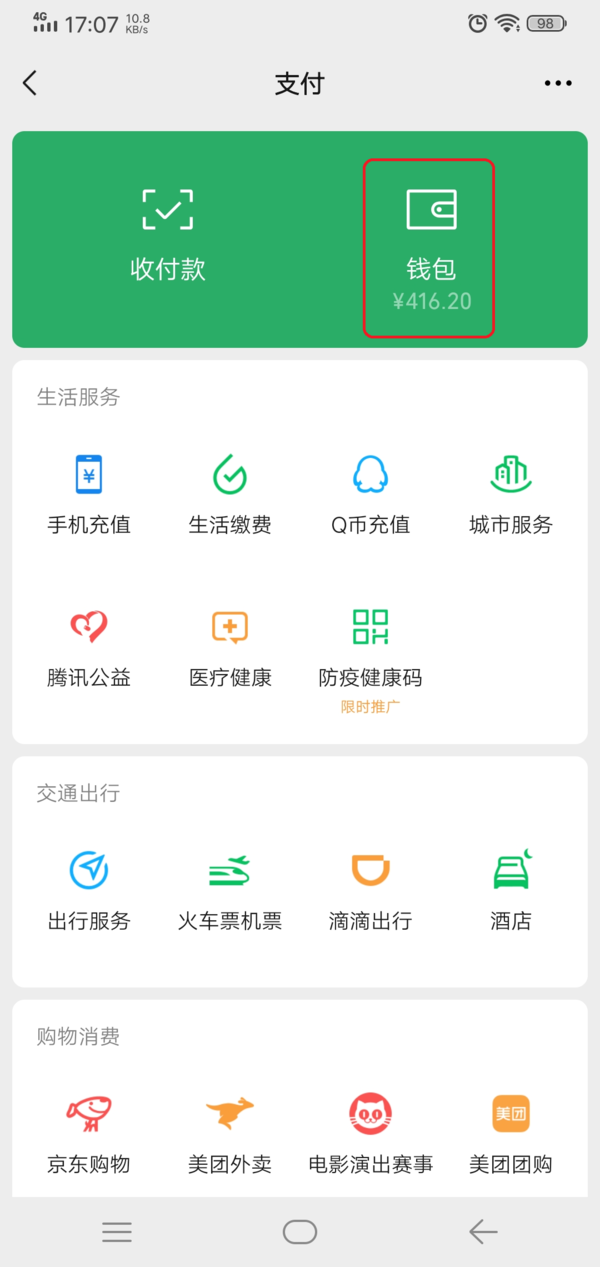 第四步,如果你的微信的钱包界面上没有【分付】字样的话,那么就没有分付的开通入口了。此时我们将微信升级到7.0.9版本以上,然后再查看有没有分付的开通入口。