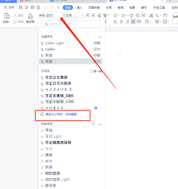 字体当中,找到查看更多云字体选项,并点击打开。