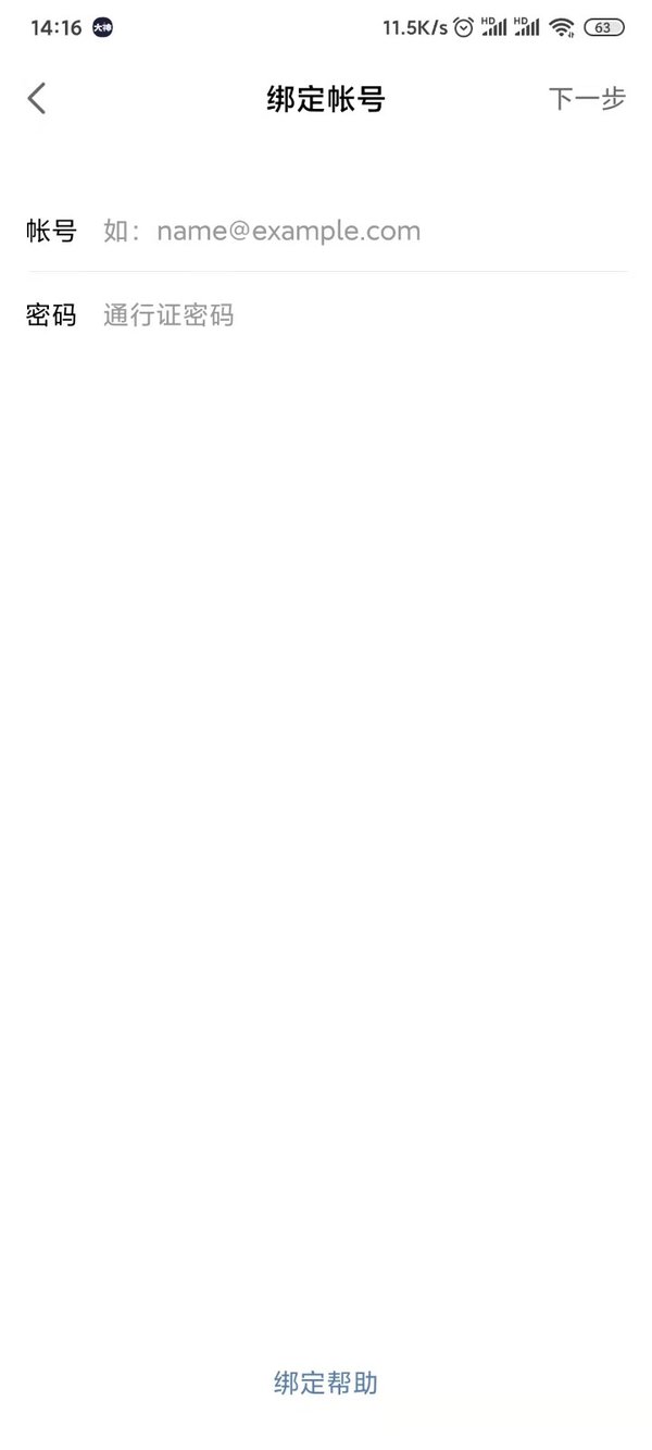 输入需要绑定的账号和密码,点击下一步。