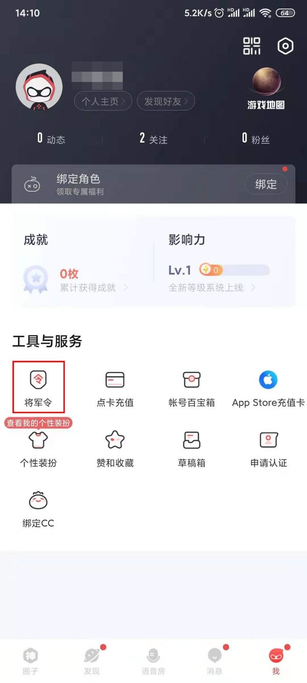 进入个人信息页面后,点击工具与服务中的将军令。