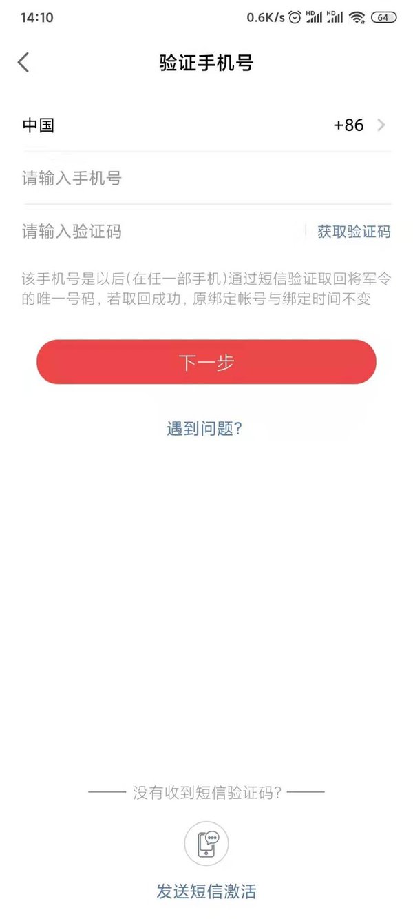 输入账号绑定的手机号以及短信验证码后点击下一步。