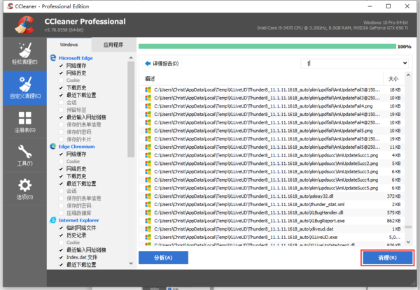 完成垃圾文件的扫描后,点击下方的清理即可。