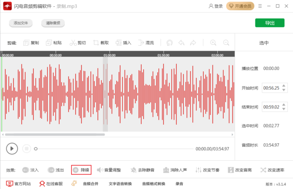 点击试听检查降噪后的效果,如果对效果满意,点击右上的导出即可。