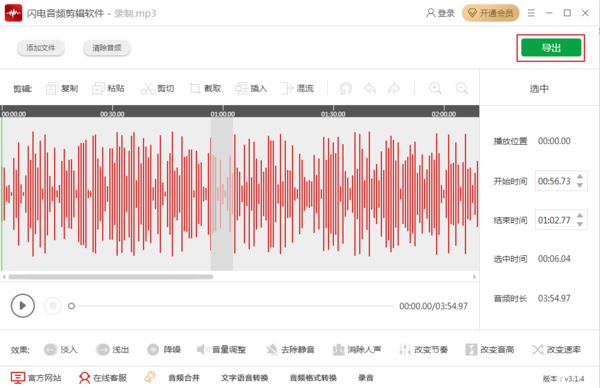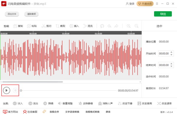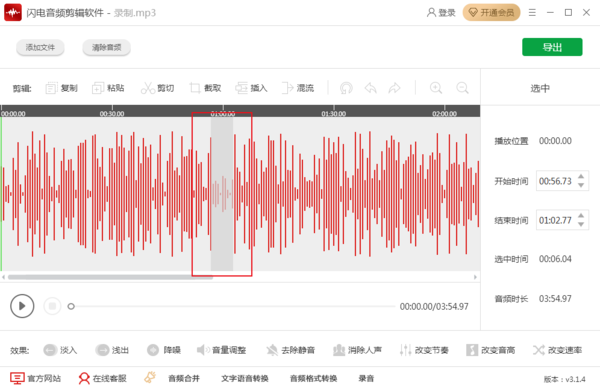 以上就是使用闪电音频剪辑软件调整音频声音大小的方法,除了调整音频的音量外,这款软件还支持为音频进行降噪、去除静音等功能,如果有需求不妨下载试试。