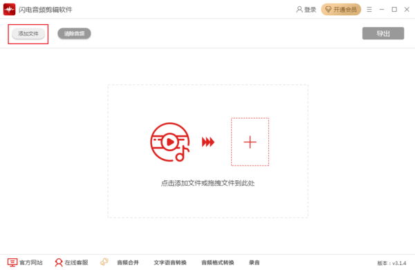 首先打开闪电音频剪辑软件,点击上方的添加文件,将需要调整的音频文件导入到软件中。