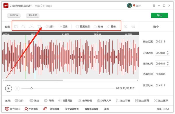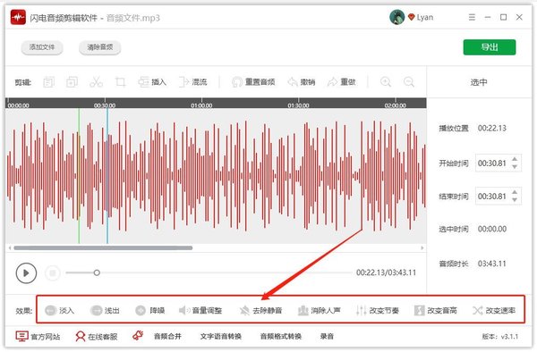 平时大家可能会遇到一段视频,里面的歌非常好听,想要单独截取出歌声或者截取歌曲中的一段,那么用哪款软件合适呢?今天小编就给大家推荐一款吧,闪电音频剪辑软件是一款专业高效的音频剪辑软件,提供剪切、合并、混流、降噪等等多种编辑功能,支持多种音频格式的导入导出,简单易操作。最主要的特点即是简单、易上手,不管是小白还是专业人员都能够操之即来挥之即去。利用它我们可以简单的对录制好的音频文件重新编辑并制作铃声,为您的生活增添了独特的个性。