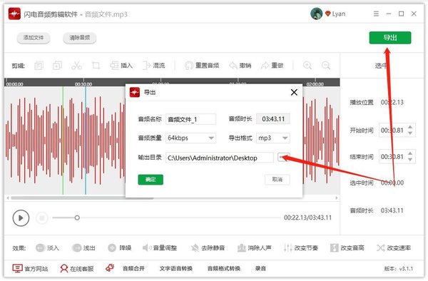 得到以下提示按钮,说明编辑好的音频已经成功导出!