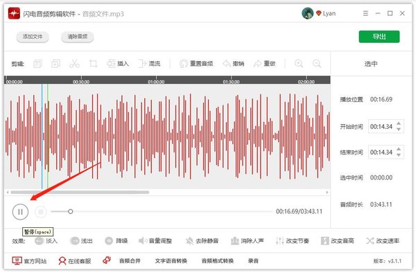 第四步、点击下方的“播放”按钮可播放音频内容,方便我们知道当前选中的音频内容。