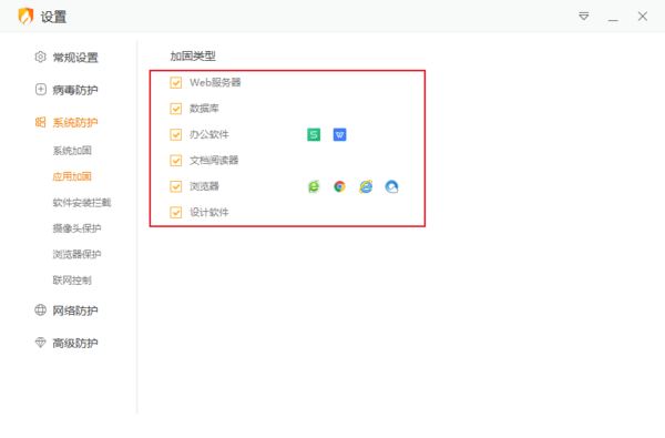 将需要加固的软件类型进行勾选,然后关闭窗口。