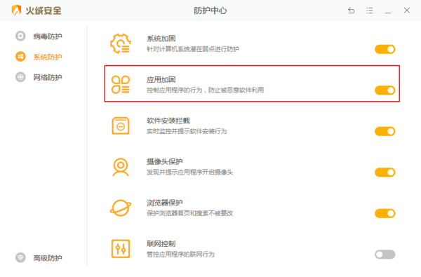完成以上操作后,应用加固功能就成功开启了,日后在正常使用电脑和下载软件时,电脑中的软件就不会被恶意利用和捆绑垃圾软件了。