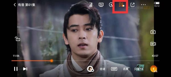 第二步,把手机横过来,横屏看视频,然后点击屏幕的任意地方,这时候我们就会发现,在屏幕的右上方有一排按钮显示了出来,这其中就有弹幕开关。