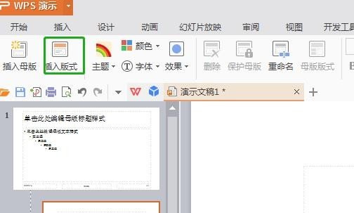 点击【设计-编辑母版】。选择一个合适的位置【插入版式】,这样就新建了一个母版版式。