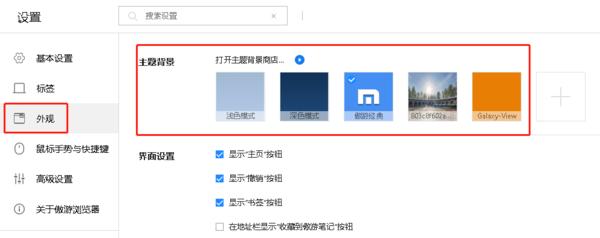 想要在傲游浏览器上设置背景的小伙伴,可以在打开傲游浏览器后,点击页面右上角的三个横线图标,在出现的选项栏中,选择“设置”键。跳转到设置页面后,选择“外观”设置,就能在主题背景中选择其他背景了。