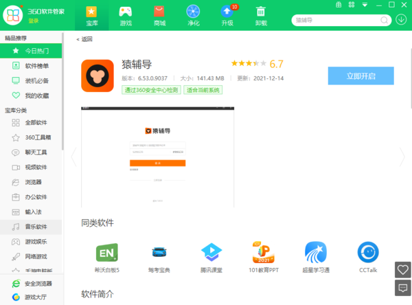 首先,打开360软件管家,然后在其搜索栏中输入“猿辅导”进行搜索;之后,来到猿辅导的界面,在这里,我们不但可以下载安装猿辅导,还可以浏览关于猿辅导的介绍与评价,这可以很大程度地帮我们了解猿辅导。