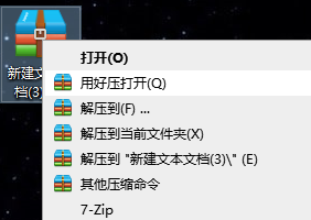 在电脑上找到并下载好文件压缩包后,选中对应的压缩包图标,单击鼠标右键,在弹出的选项框中,选择“用好压打开”或者是用好压“解压到”等选项。