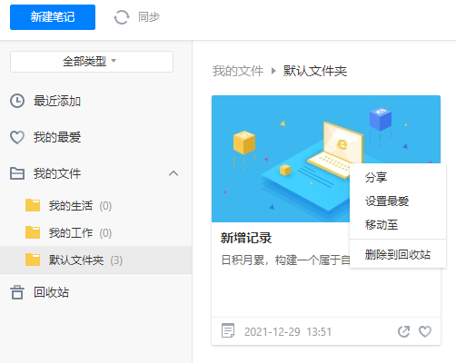 跳转到傲游笔记页面之后,选择对应的笔记图标,单击鼠标右键,就能将该笔记移动至其他文件夹中,或者是删除到回收站中了。对于网页内容类的笔记,双击笔记图标打开之后,就能对笔记进行编辑了。