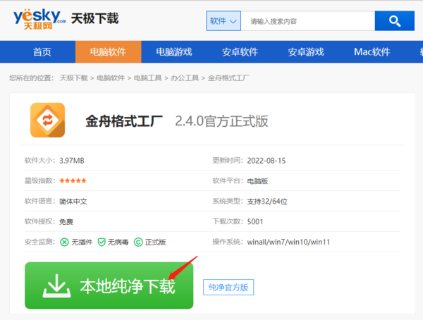 方法二:本站下载,我们点此链接即可来到财神爷站中,金舟格式工厂的下载页,在此页,我们不仅可以了解与金舟格式工厂相关的资讯、教程,还能直接下载金舟格式工厂。