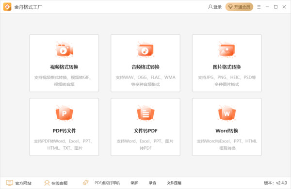 相信“金舟格式工厂是否可以免费使用”这一问题,也是大家非常关心的,为此财神爷站小编也是进行研究,发现金舟格式工厂中大部分功能还是可以免费使用的,而开通会员之后,我们则可以享受更加专业的功能。