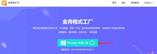 方法一:官网下载,我们打开金舟格式工厂的官网,之后在官网页面点击【Windows免费下载】按钮,即可开始下载金舟格式工厂。