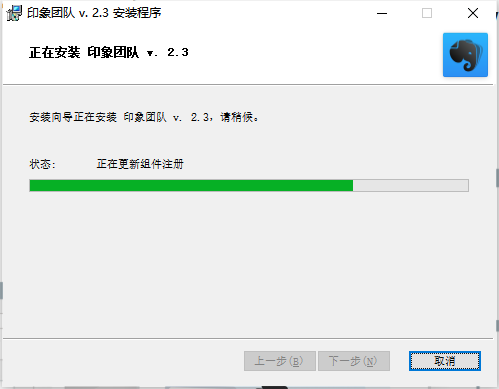 ③安装过程中,我们可以通过进度条来查看安装进度,待进度条跑满,印象笔记企业版则安装完成。