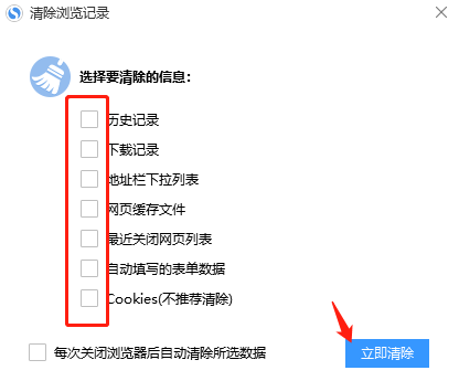 4、清除缓存。我们依次点击【三道杠】→【清除痕迹】,会弹出清理窗口,我们将需要清理的内容点击即可完成缓存清理。