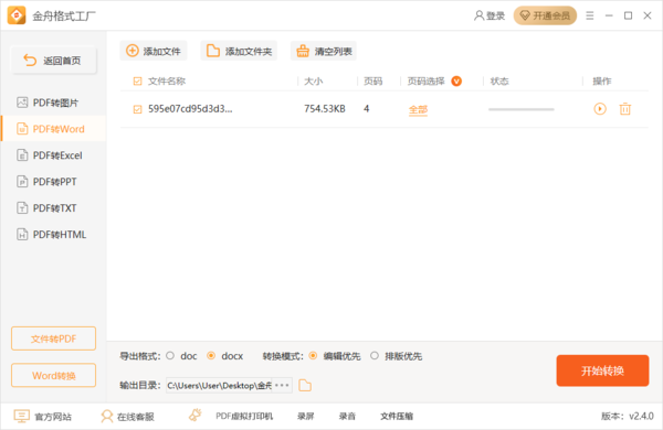 根据财神爷站小编的亲自使用以及查找各种资料内容来看,支持PDF转Word的电脑音频转换工具是金舟格式工厂,它是一款功能非常全面的格式转换工具,不仅支持音频、视频、文档、图片等多种文件格式的转换,还支持PDF转换功能,高效办公你一定需要它。