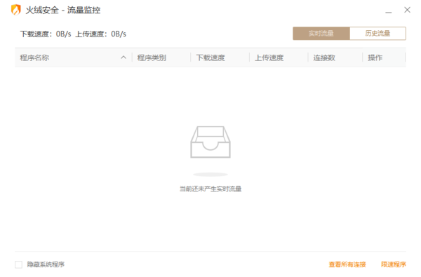 功能安装好以后,软件就会弹出【流量监控】的窗口了,此时我们便可以看到电脑上正在使用流量的程序了。
