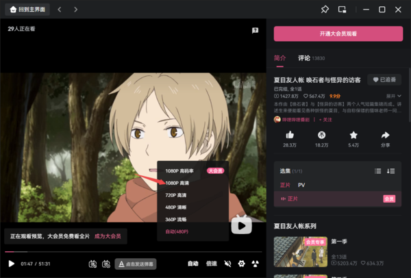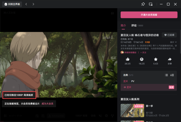 电脑版哔哩哔哩怎样调整播放画面的画质