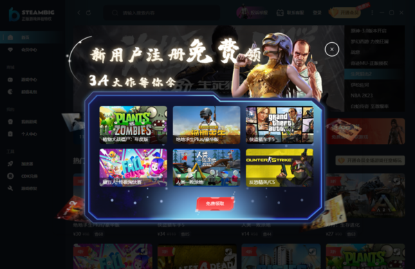 根据财神爷站小编的亲自使用以及查找本站的资料内容来看,真正能免费领取游戏的电脑游戏平台是steambig。那么steambig游戏平台上能免费领取的游戏又有哪些呢,接着往下看吧。
