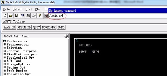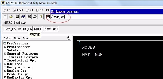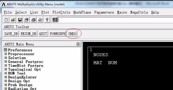 5.这时回到软件的主界面,我们会发现界面上方的ANSYS Toolbar下方出现了UNDO按钮,我们在进行误操作之后就可以点击该按钮进行撤销操作(如图所示)。