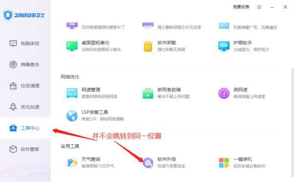 2345安全卫士的软件升级和软件管家会跳转到同一位置吗