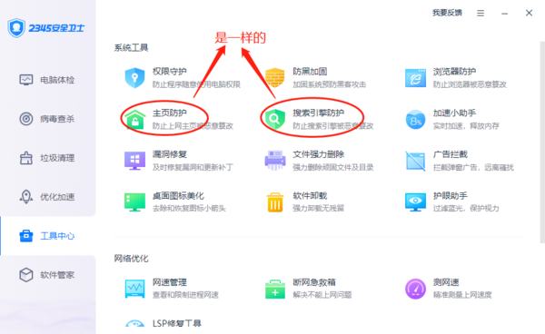 2345安全卫士主页防护和搜索引擎防护是一样的吗