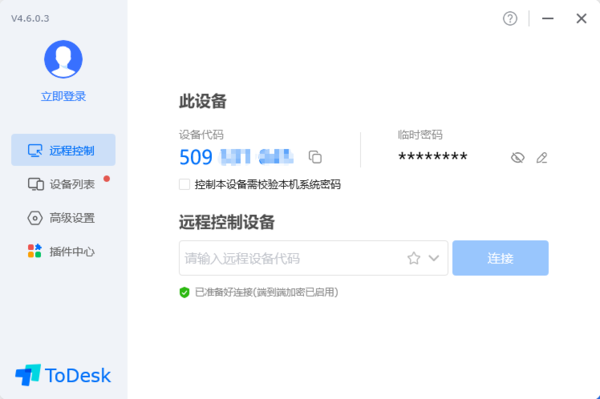 1、首先,我们先通过ToDesk软件来将需要操控与被操控的两台电脑进行连接。
