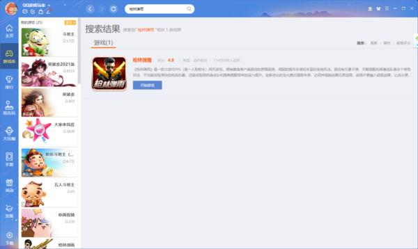 1.?大家打开下载好的【QQ游戏大厅】,在搜索框中搜做【枪林弹雨】即可搜到了;