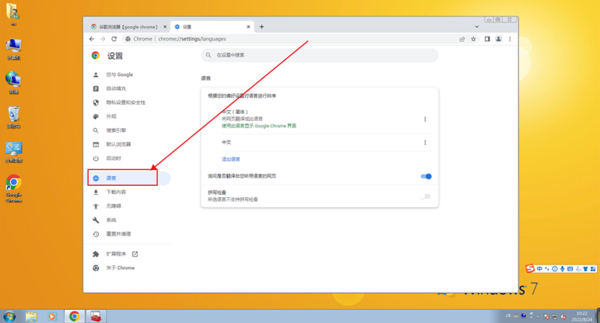 2、进入到“设置”页面以后,在左侧的功能栏里找到“语言”。