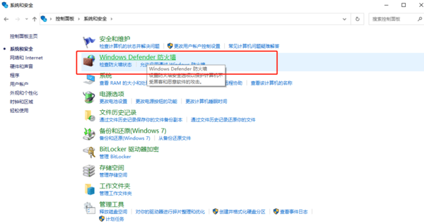 4、在控制面板主页找到“系统和安全”的选项,点击进入,然后找到Windows防火墙功能。