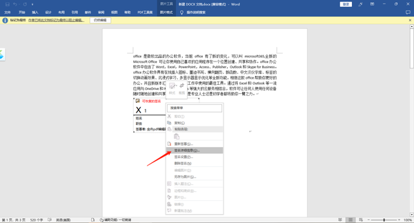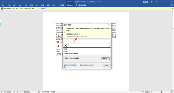 3、此时,即可在文档中显示签名效果,对文档进行数字签名后,文档将保存为只读模式,不可进行再次更改了。