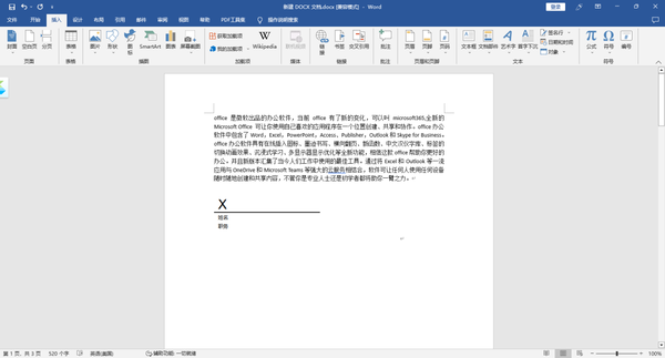 我们在工作中经常会需要签署各种文件,但是如果是电子版文档该怎么签署呢。我们可以在word中插入手写签名,有助于确保签署人的身份与声明相符,确保内容在经过确认签名之后未经更改或篡改、有助于向所有方证明签署内容的有效性。接下来小编就给大家介绍一下Office文档中添加签名行的操作步骤吧。