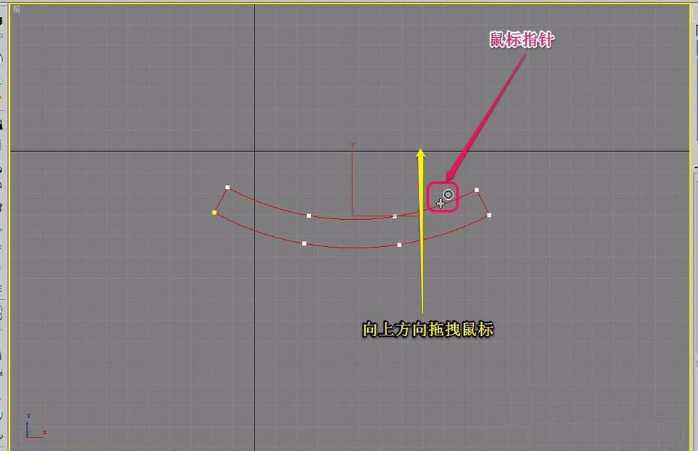 8、此时,按住鼠标键不松手,向上方向拖拽鼠标,直到出现双层弧线(如图所示)。