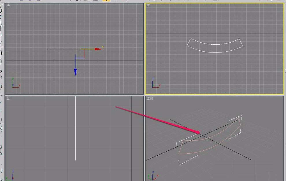2、在“前”视图中绘制一条弧线。