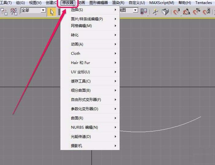 3、打开“修改器”菜单。